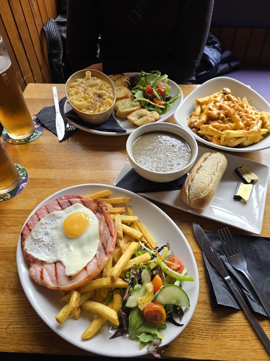 Typical Scottish pub, very friendly staff and good quality food. We had a good fish & chips and a fantastic cake to finish. It overlooks the station platforms.